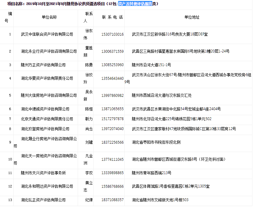 随县财政局委托湖北昕晟工程咨询有限公司,就2019年10月至2021年9月随县协议供货遴选项目进行公开招标,湖北国盛会计师事务有限公司、湖北玖誉房地产评估有限公司分别在审计服务、资产及其他评估服务项目中成功中标。